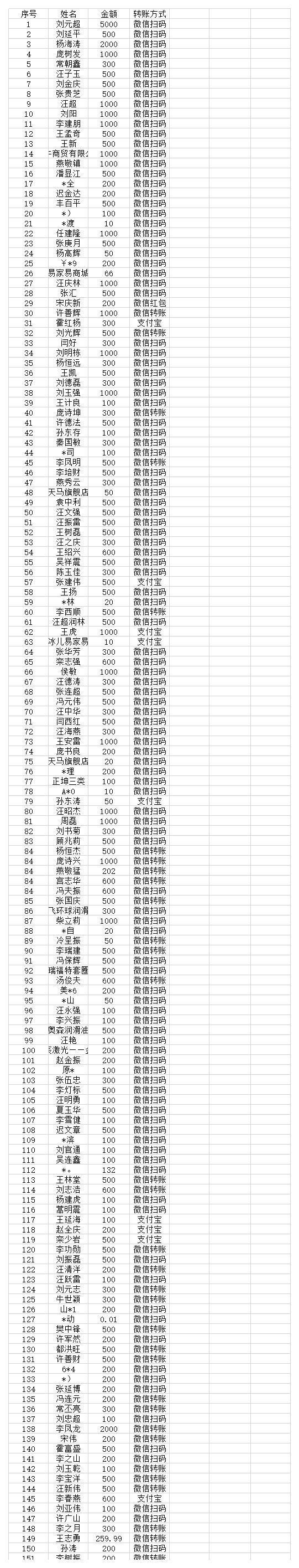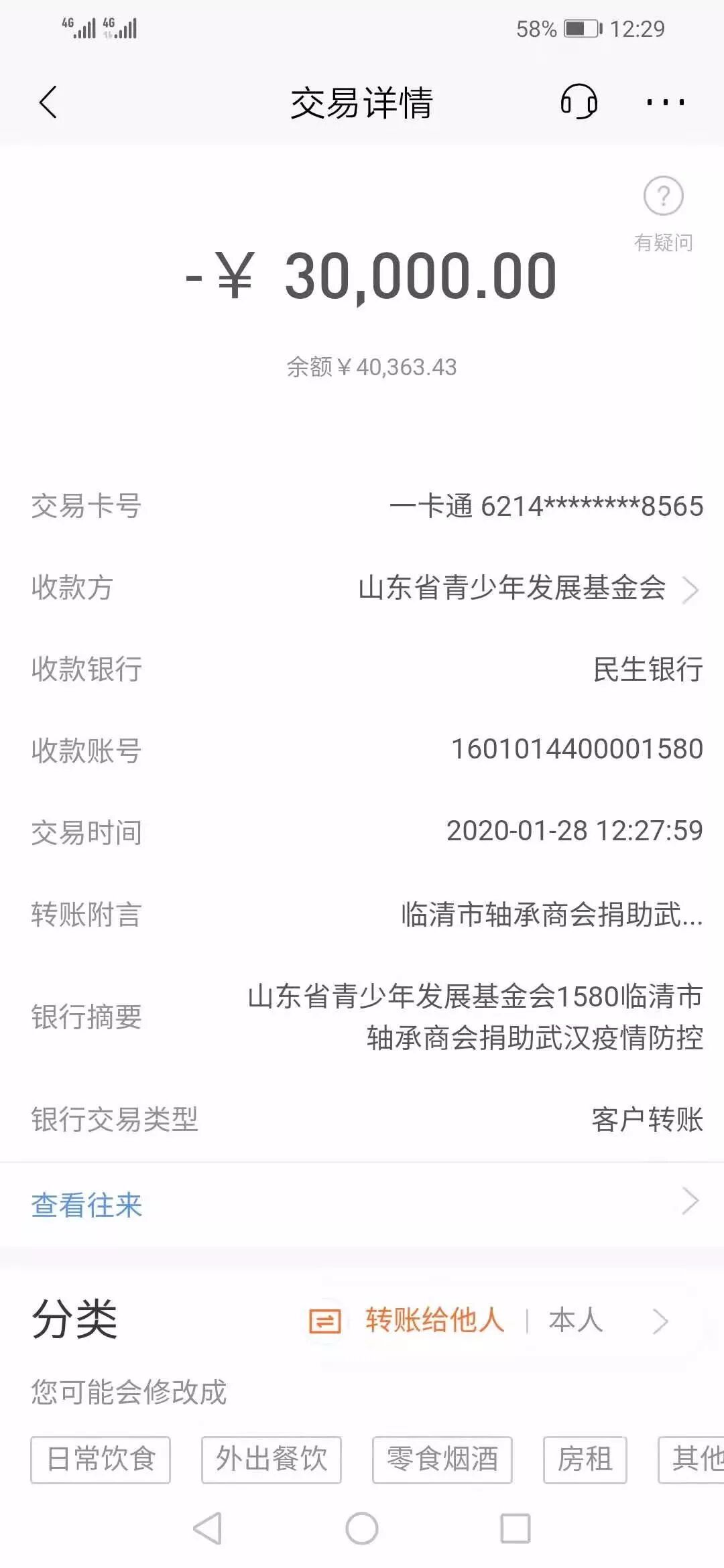 “疫情当前,行动在先”轴承商会募捐活动进行时时间:2020-01-29 自武汉疫情爆发以来,轴承商会很多会员自觉地向商会询问是否开展捐助,商会工作人员积极对接,自1月26日,轴承商会接到团省委《支援武汉,立即行动》倡议捐赠防疫物资的号召后,轴承商会党支部研究决定立即在商会会员中发出倡议,号召大家积极行动捐款奉献爱心,携手共渡难关! 轴承商会会员纷纷转发倡议书,更多的爱心人士行动起来,据不完全统计,截止到发稿之时轴承商会共收到捐款69200元(目前,还有很多爱心人士在积极捐款,其中很多会员直接转到山东省青少年发展基金会不在本次统计范围内,事后可直接与商会秘书联系,待确认后进行名单补录)。 临清市轴承商会 捐 款 截 图 下滑查看 款项明细 爱心名单 感谢各位爱心人士的无私奉献,让我们用爱温暖这个“寒冷”的春节,募捐活动正在进行中,名单维护滞后请见谅。(部分未透露姓名的爱心人士,事后可与商会秘书处联系,以便备案。) 有逐光者披荆斩棘,只为照亮他人希翼 白衣为战甲,见医者仁心 同在抗争路途之上 更忧心紧急之处安危 虽身在异地,亦同在前行。 武汉加油,中国加油! |